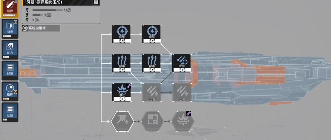 当驱逐舰建造完成后,对其进行技术强化是进一步提升其作战效能的关键。舰船出厂后,可以通过投入技术值来强化其各个子系统,包括武器系统、动力系统等。技术值主要通过战斗积累或研究档案获取。对于阋神星轻型火炮驱逐舰,可以优先将技术值用于强化其火炮伤害和命中率。动力系统的技术值则可用于提升舰船的闪避能力,从而增强其在战场上的生存能力。这是一个持续投入和优化的过程,能够让同一型号的驱逐舰发挥出更强的战斗力。